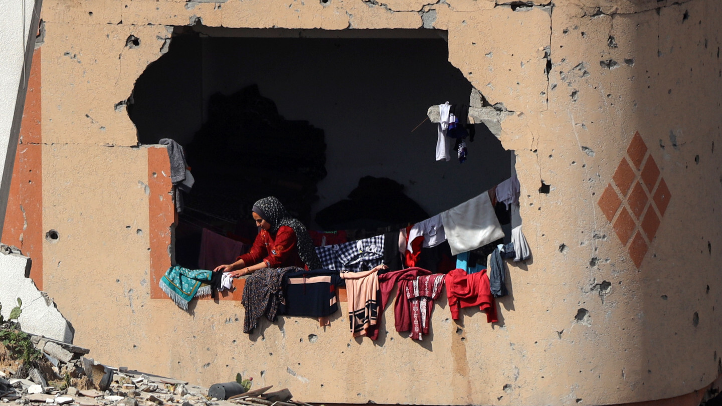 After displacement, surgery and repeated moves between shelters, Israa returned to what remained of her home and found her sewing machine still intact. She adapted her work so she could sew while seated, using embroidery as both a source of income and a way to preserve dignity for her family. The article describes how she now sells embroidered dresses with help from her sister, while caring for three injured children.